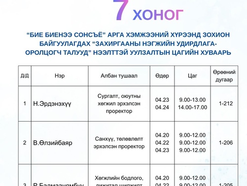 СУРГУУЛИЙН ХЭМЖЭЭНД ЗОХИОН БАЙГУУЛАГДАЖ БУЙ МЭДЭЭ, МЭДЭЭЛЭЛ