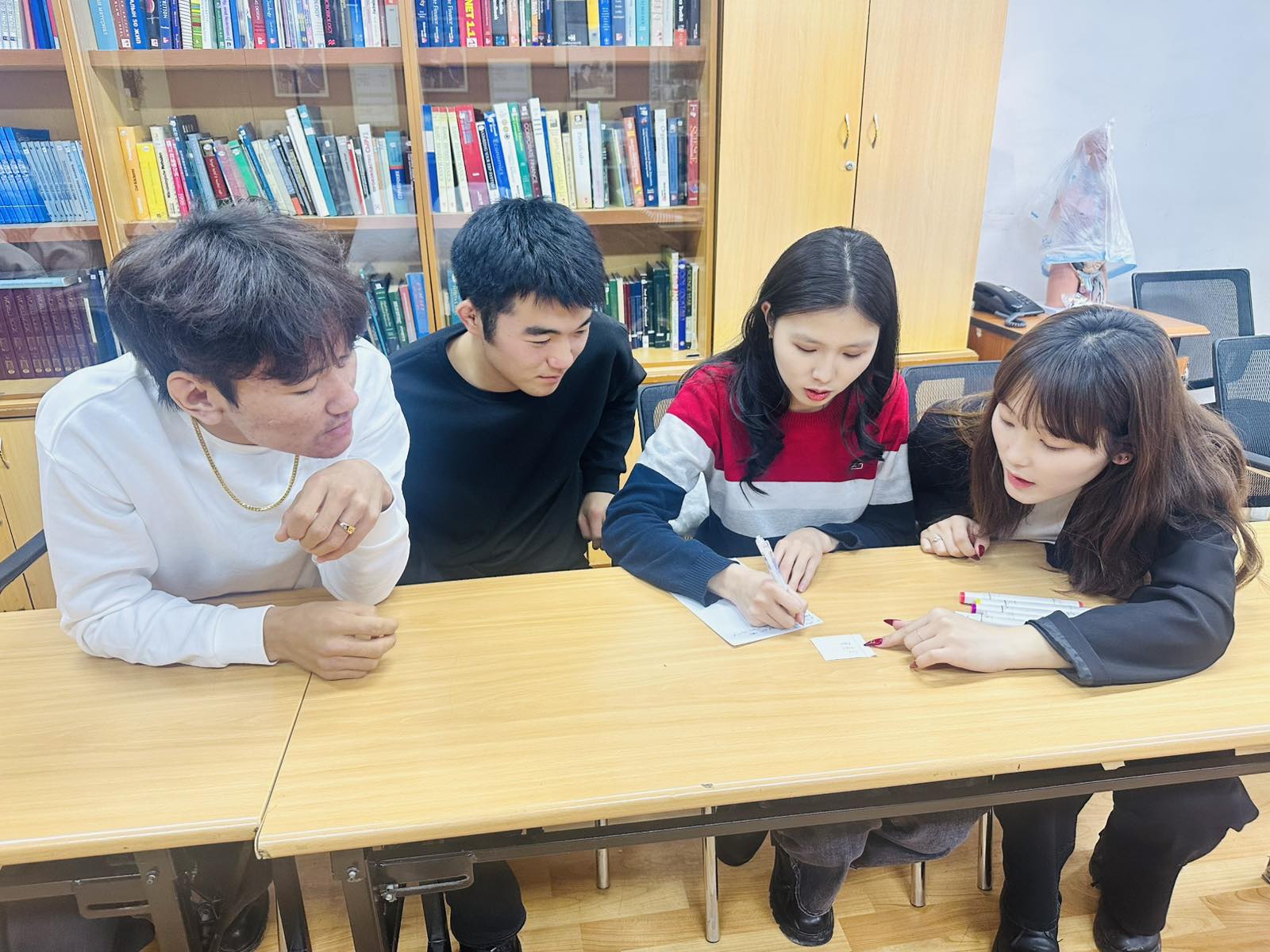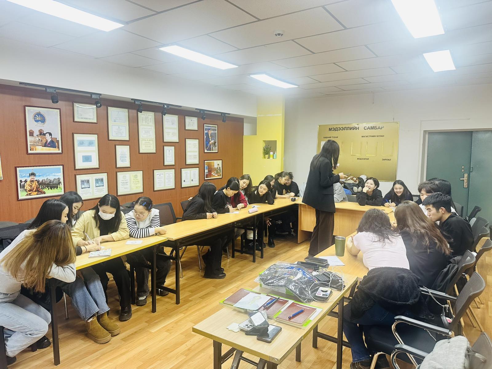 2. 1-4-р курсын оюутнуудын хамтын үйл ажиллагааг дэмжих зорилгоор хооронд нь хольж, баг болгон буухиа тэмцээнийг зохион байгуулж, оноогоор дүгнэн, түрүүлсэн эрдэмтэн багш нарын номын дээжис болон ШУТИС-ийн тэмдэглэлийн дэвтэр, бал өгсөн.