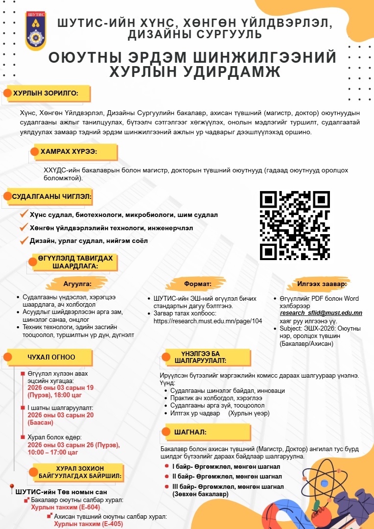 Жич: Шаардлага хангасан эрдэм шинжилгээний өгүүллийг “Эрдэм шинжилгээний эмхтгэл”-д хэвлэн нийтийн хүртээл болгоно.