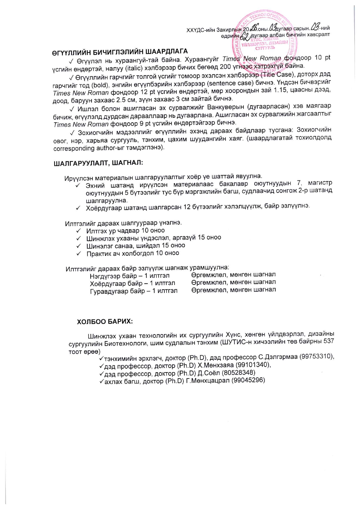Шинжлэх Ухаан Технологийн Их Сургуулийн Хүнс, хөнгөн үйлдвэрлэл, дизайны сургууль, Биотехнологи, шим судлалын тэнхимээс жил бүр уламжлал болгон зохион байгуулдаг “Биотехнологи бидний амьдралд – 2026” оюутны эрдэм шинжилгээний бага хуралд бакалавр болон магистрын оюутнуудыг идэвхтэй оролцохыг урьж байна.