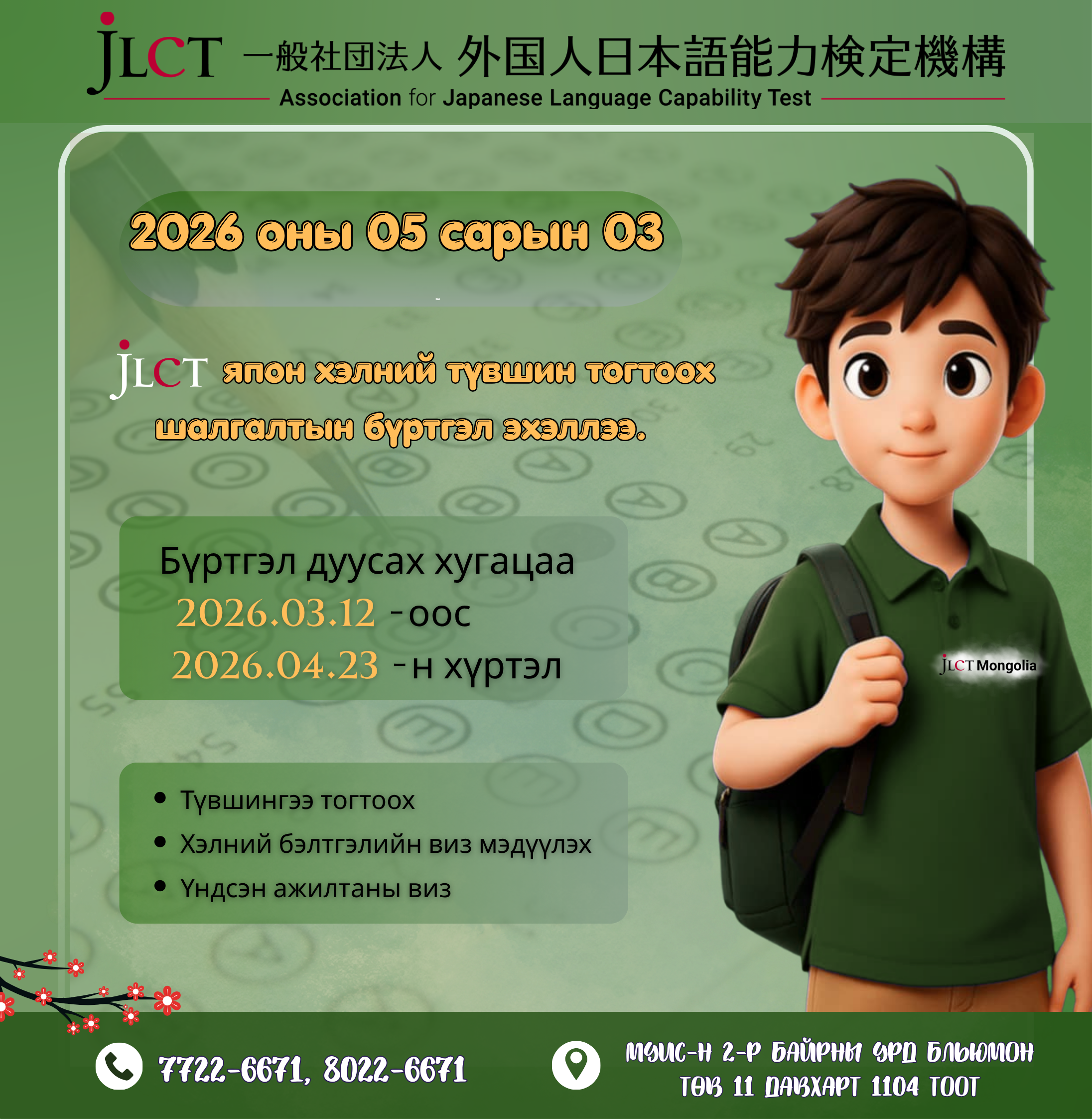 Сонирхож буй оюутан залуус дэлгэрэнгүй мэдээллийг эндээс авна уу.