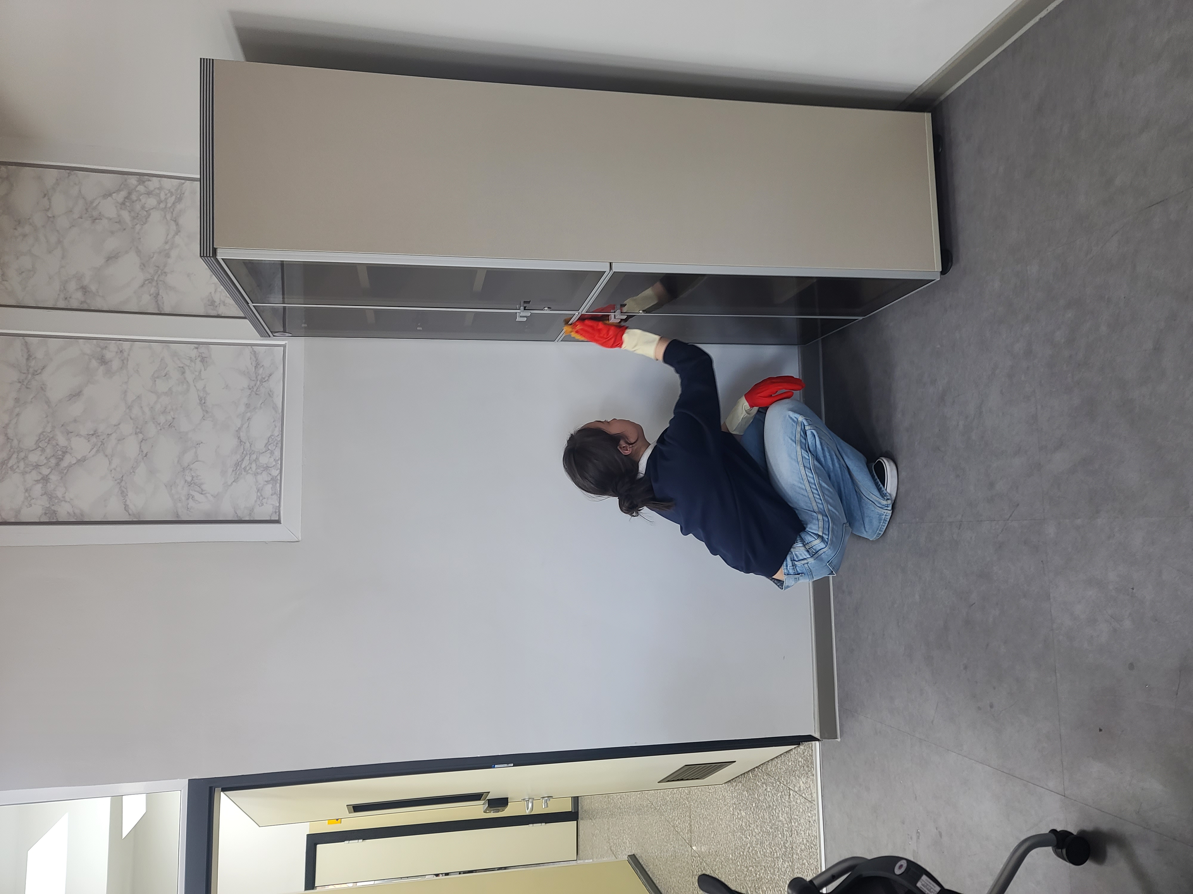 1-136 ангийн цэвэрлэх үед олон тооны наалдсан бохь таарсан. Бүгдийг хусаж арилгасан. Дараа нь лабораторийг цэвэрлэсэн.