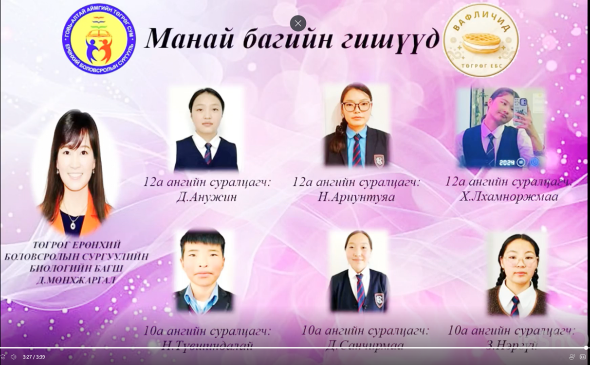 Дорноговь аймгийн Ерөнхий боловсролын 3-р сургуулийн 10Б ангийн сурагчид (Ашигтай бичил биетэн ба хүнсний үйлдвэрлэл баг)